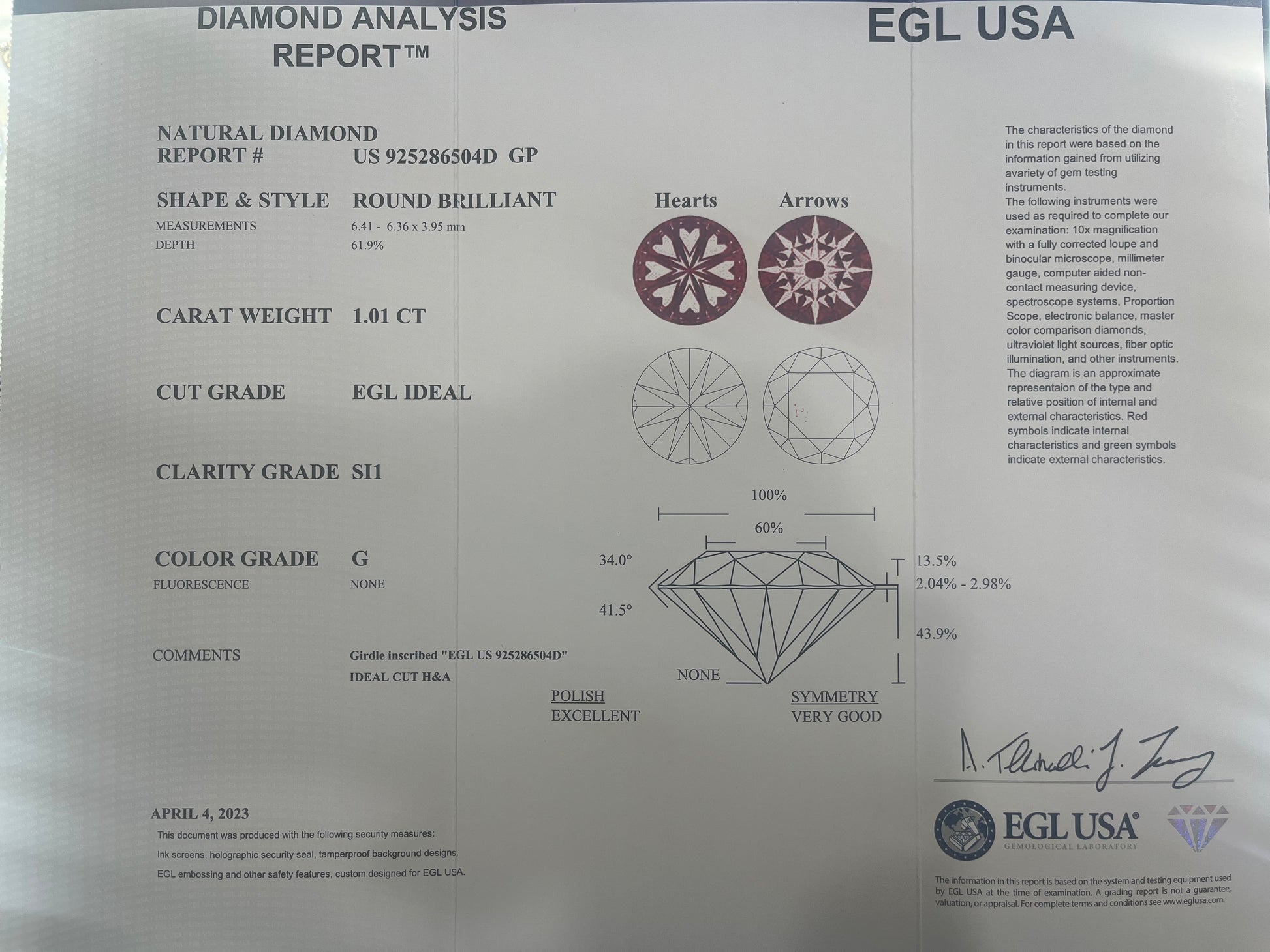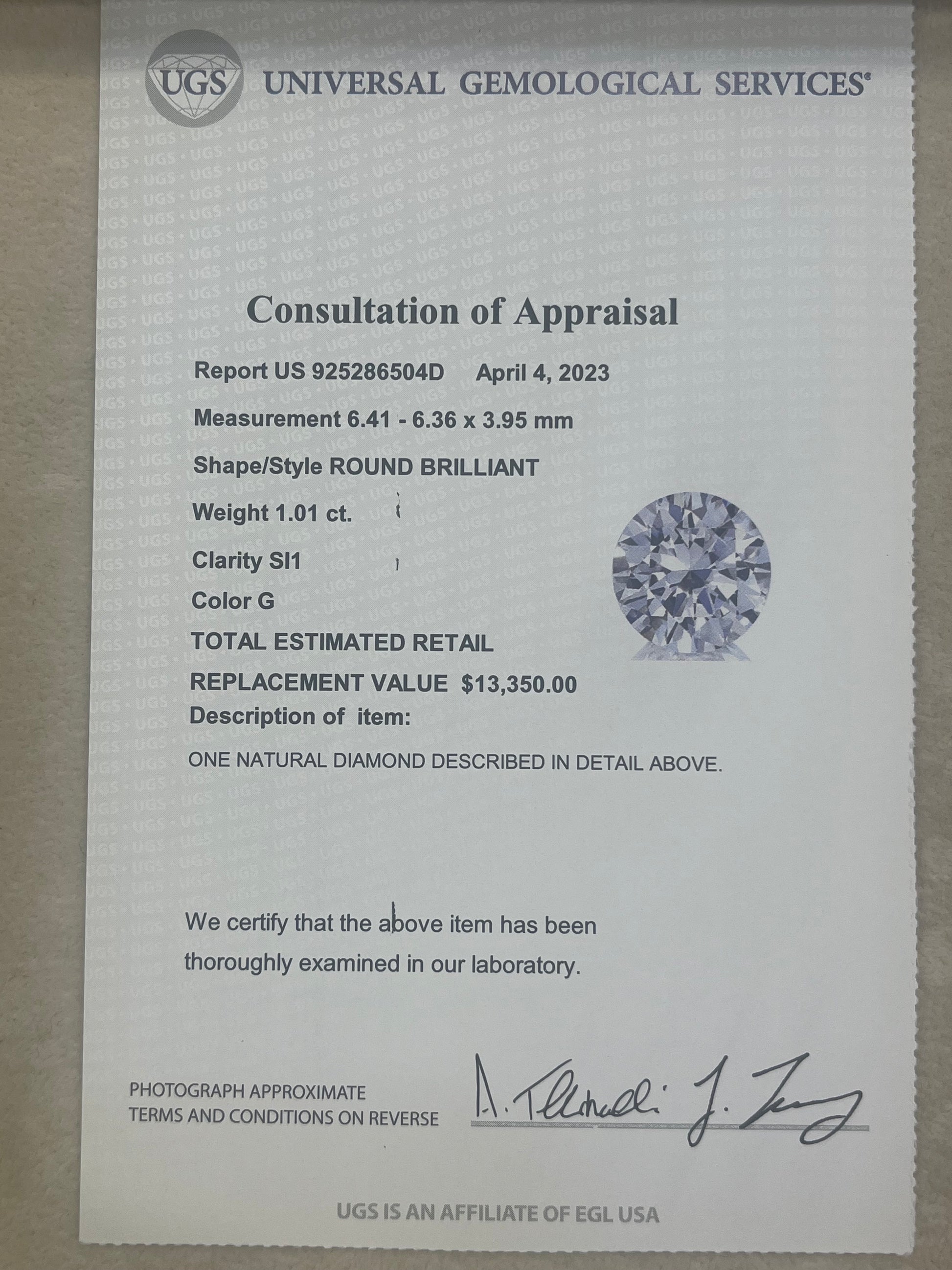 Comes with EGL Certificate and Appraisal Summary Certificate