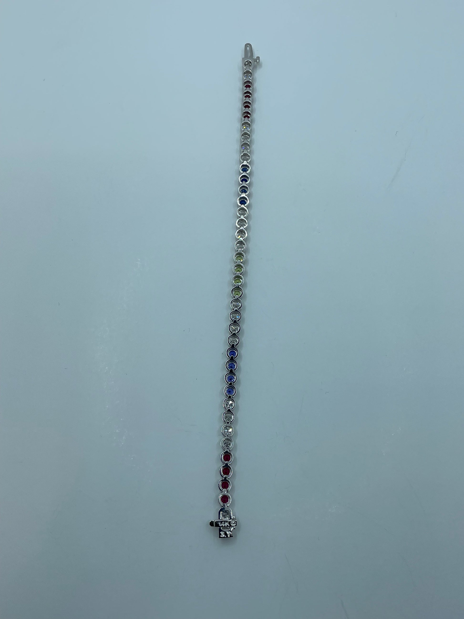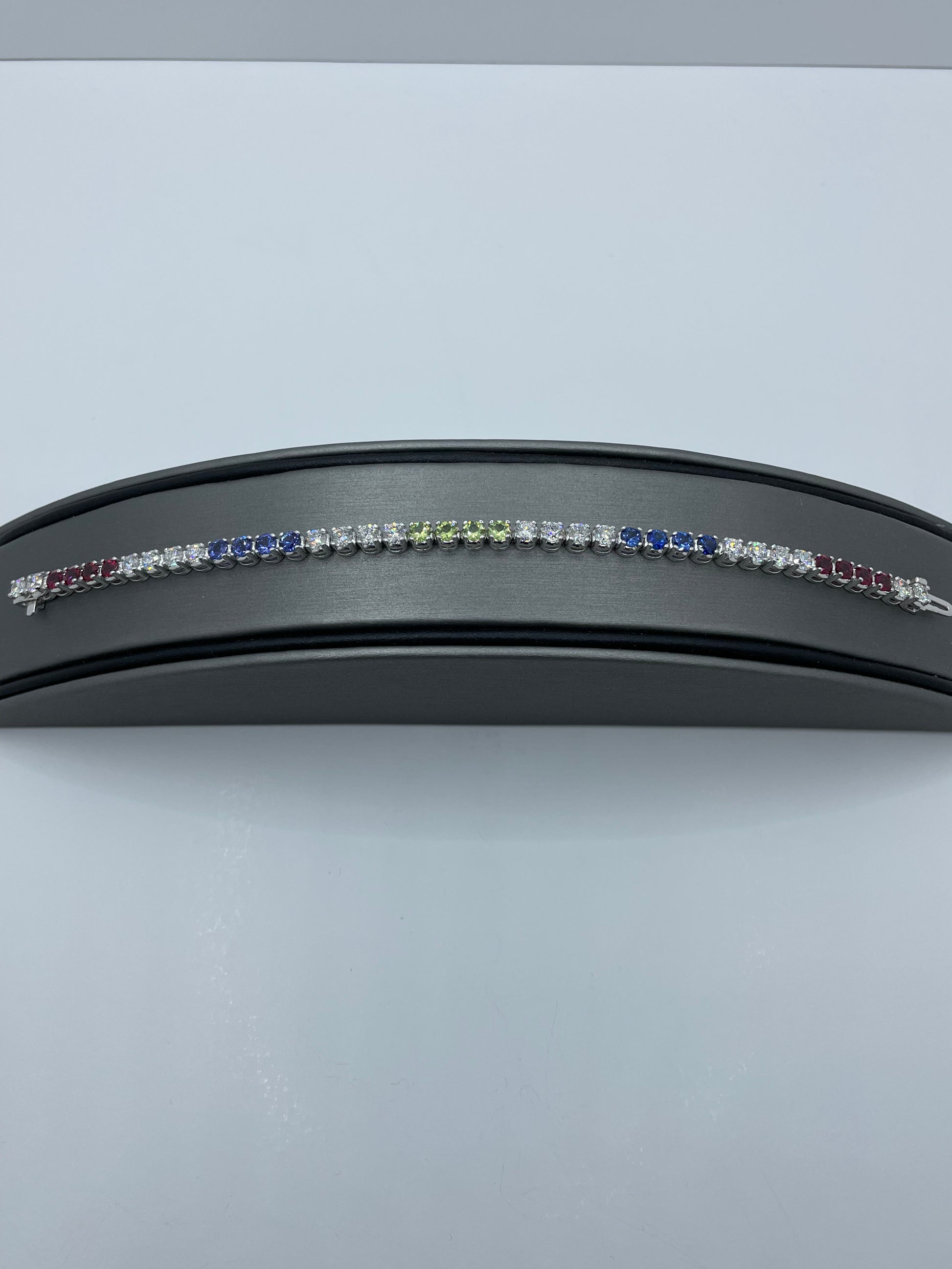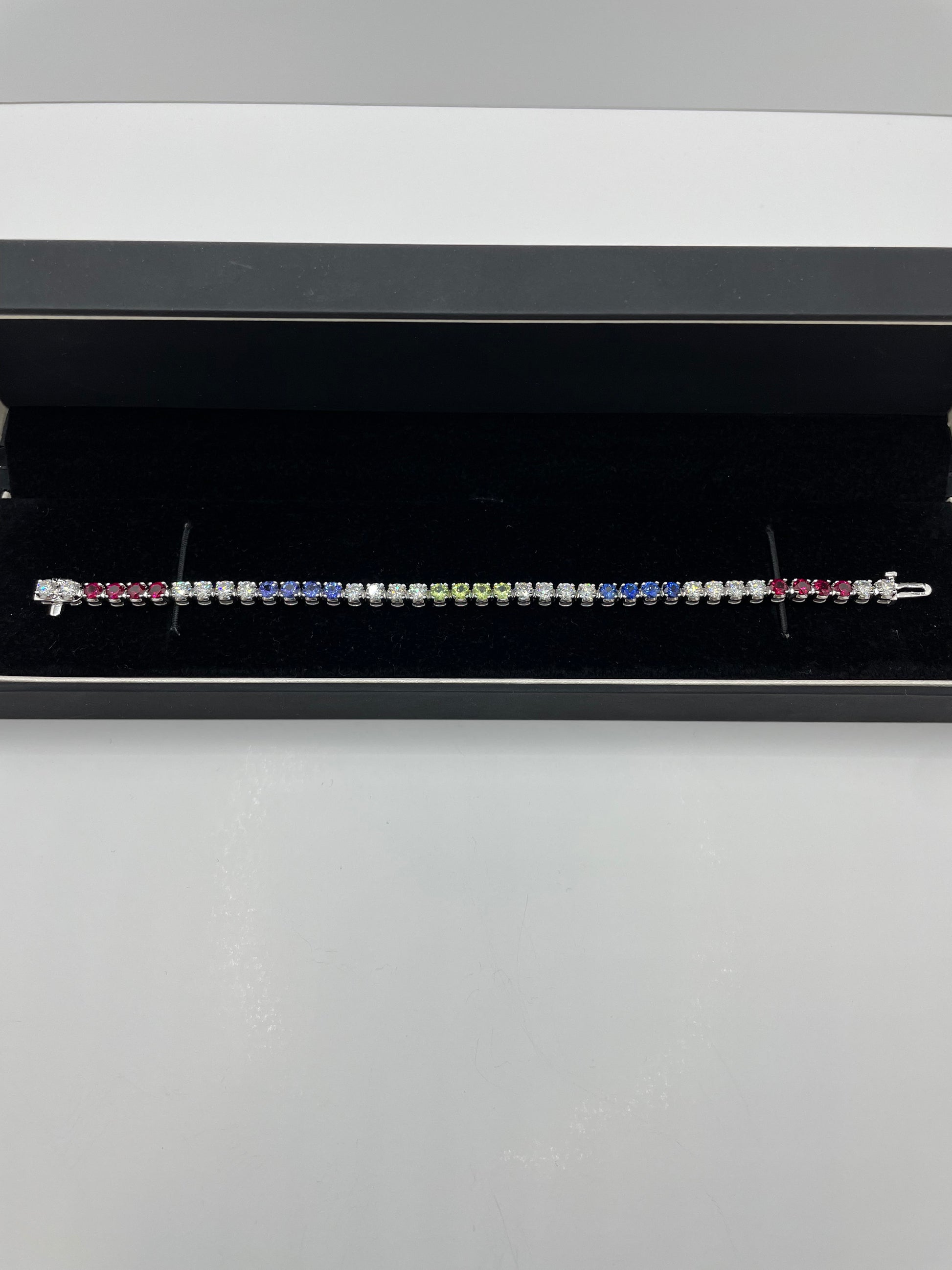 14k White Gold Diamond and Multi-Gemstone Tennis Bracelet 7 inch