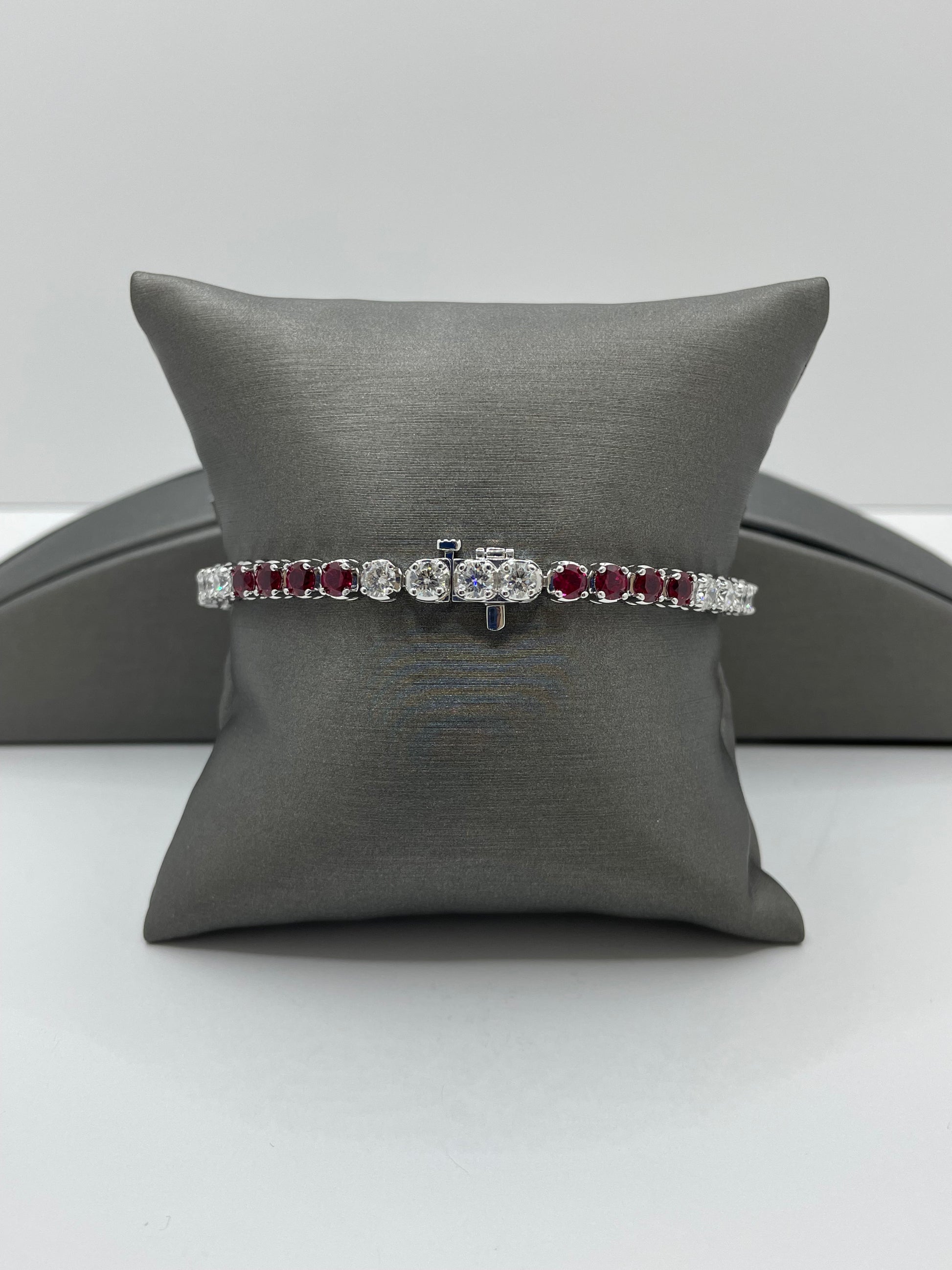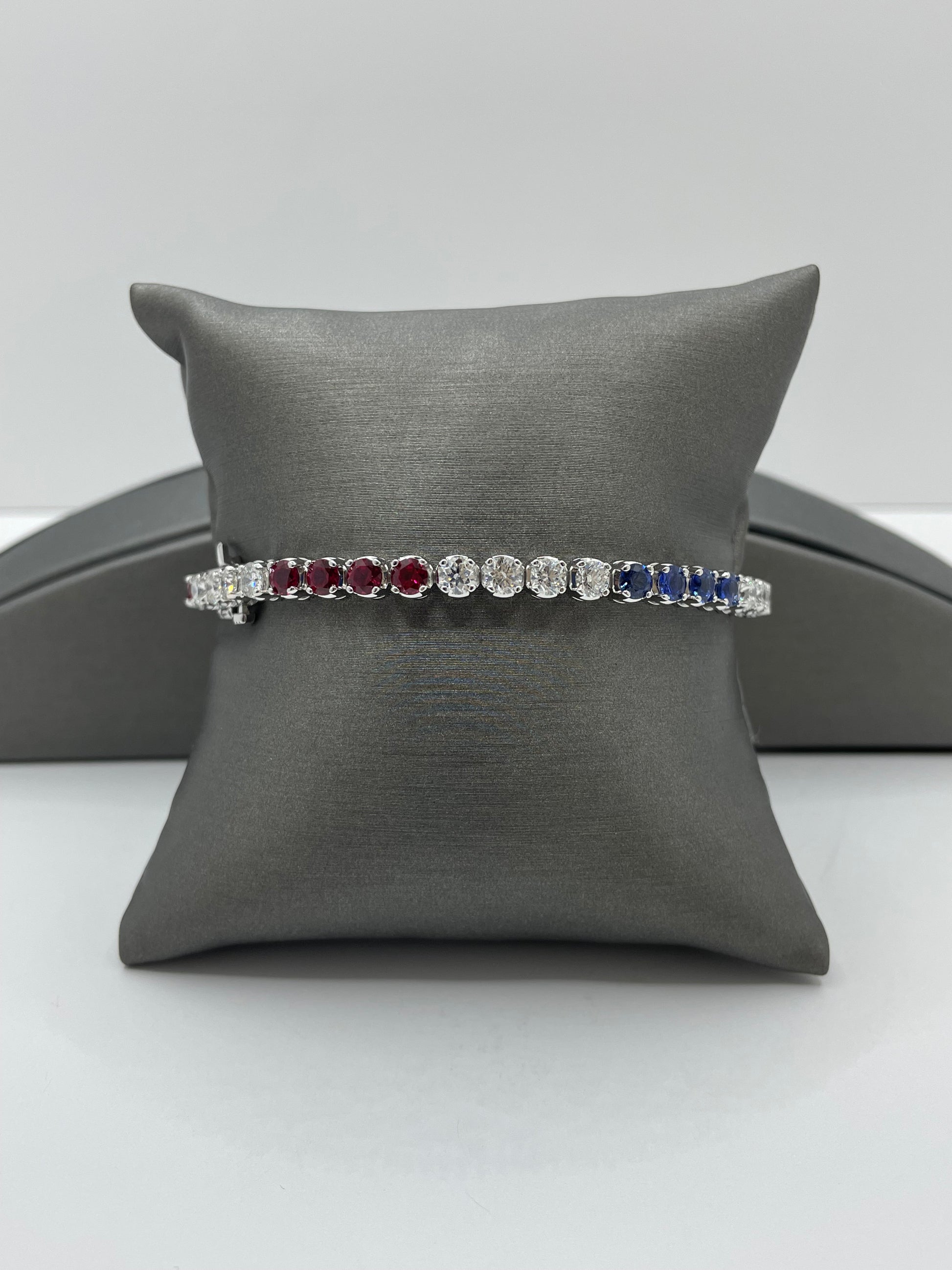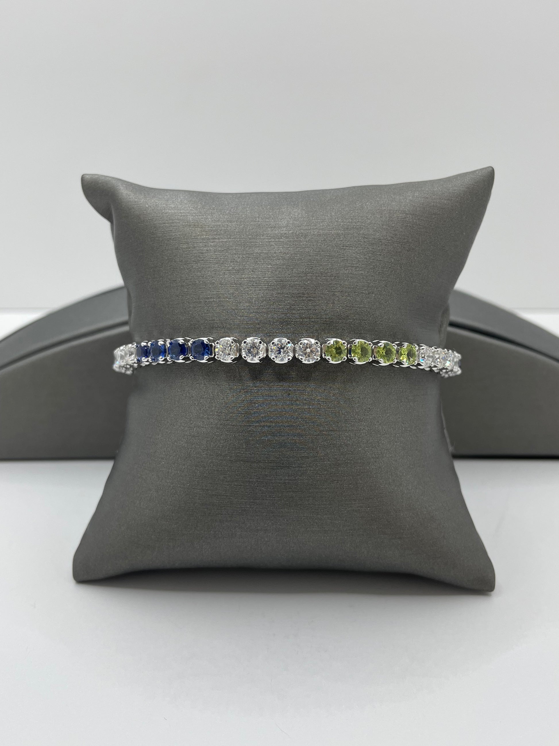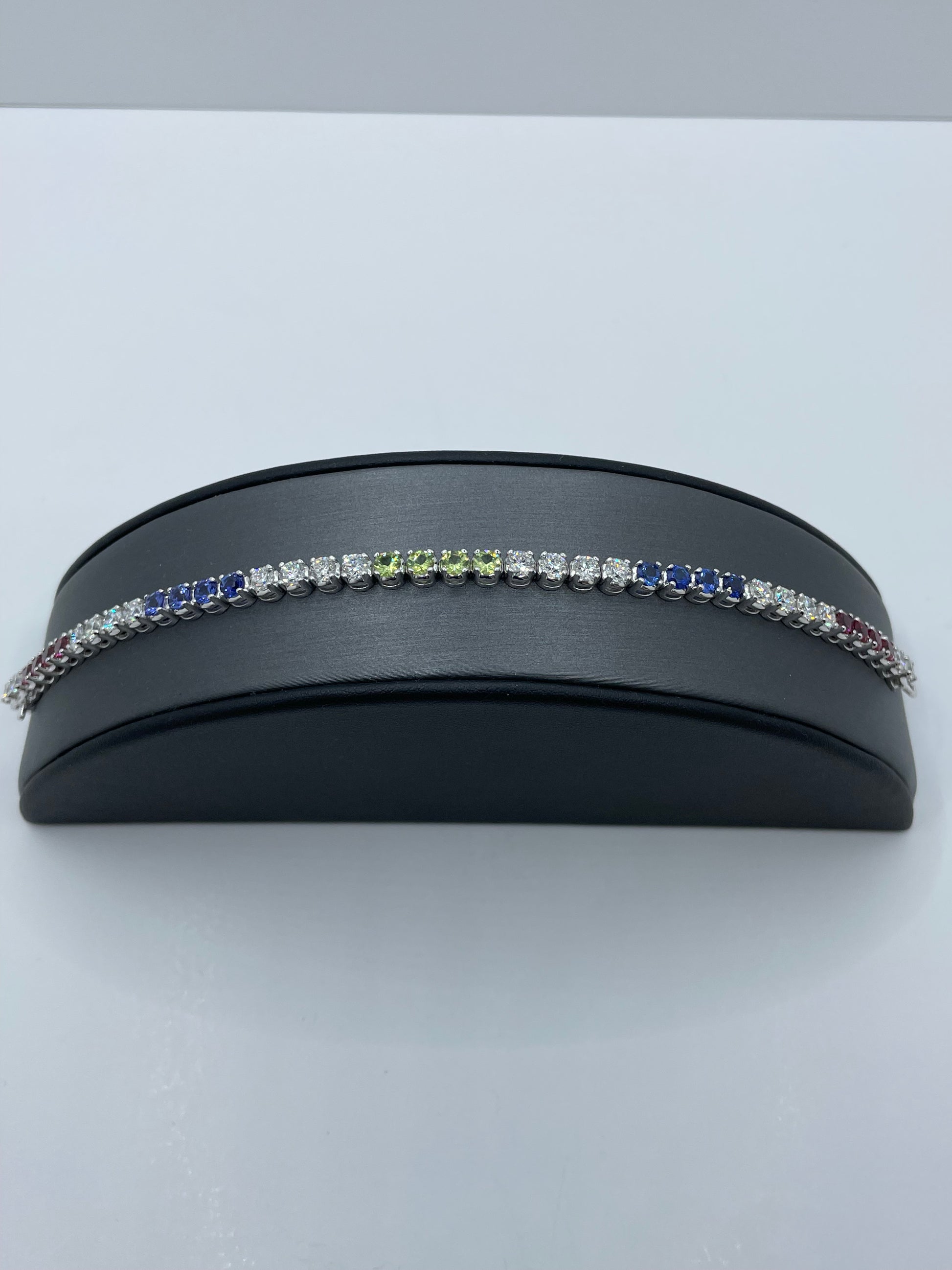 14k White Gold Diamond and Multi-Gemstone Tennis Bracelet 7 inch