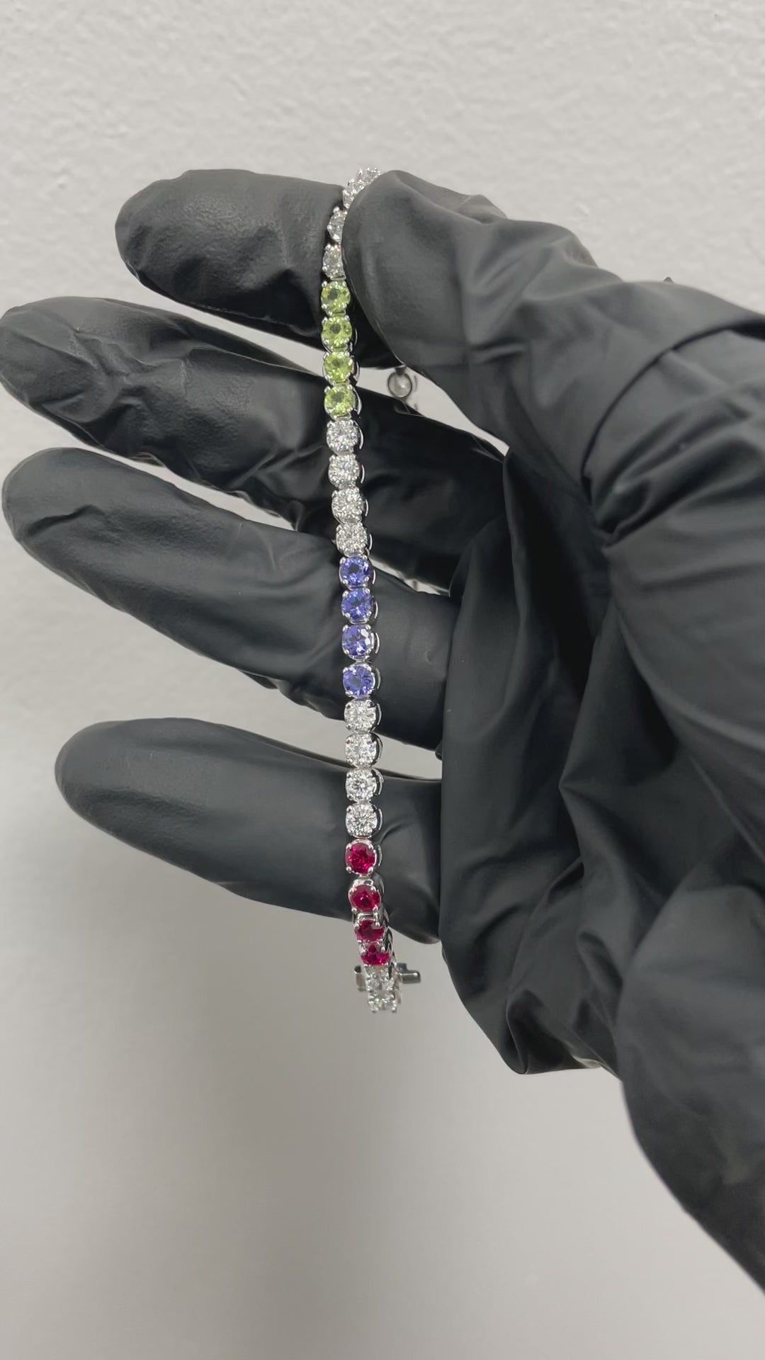 Diamond and Multi-Gemstone Tennis Bracelet in 14k White Gold