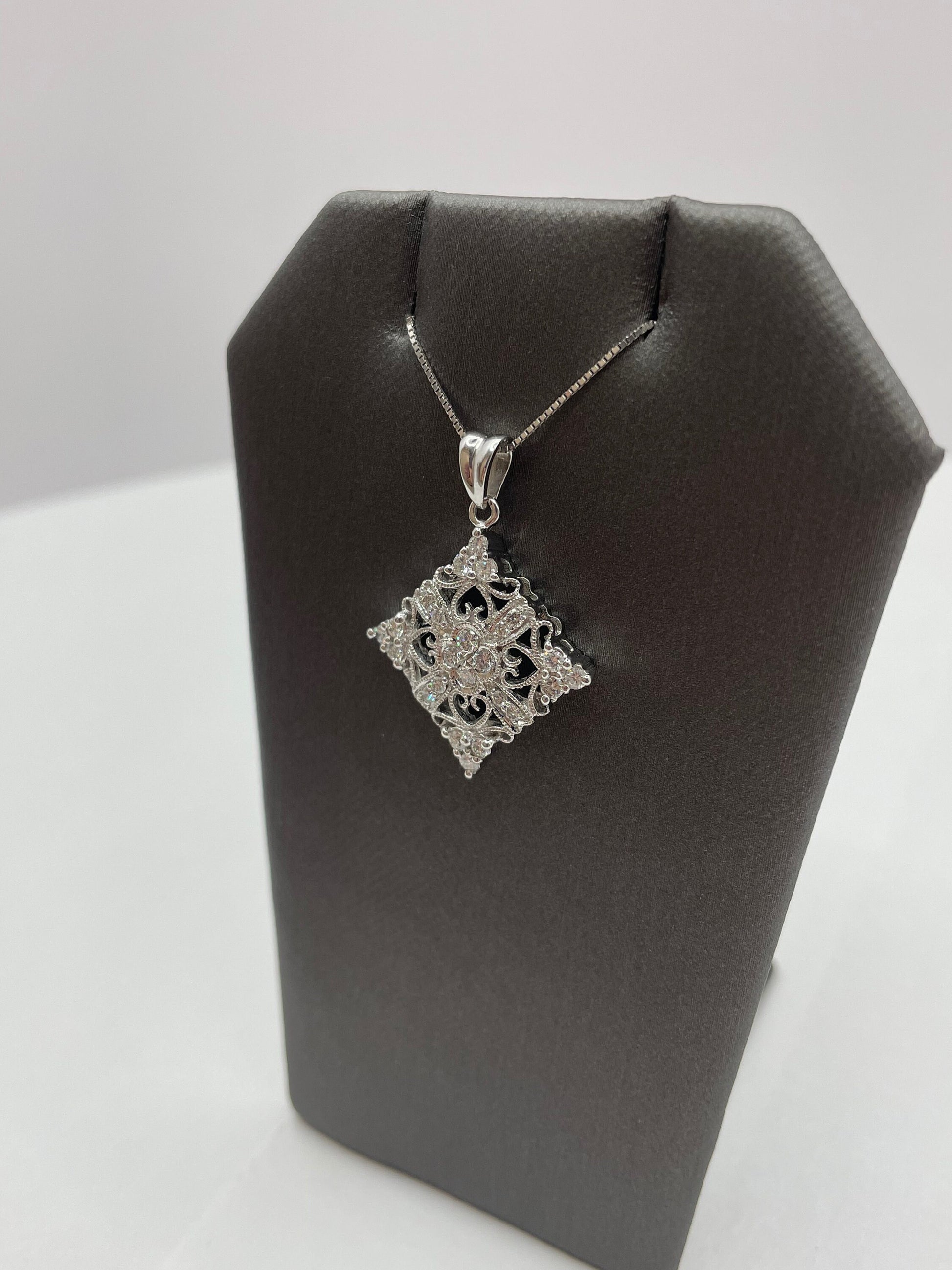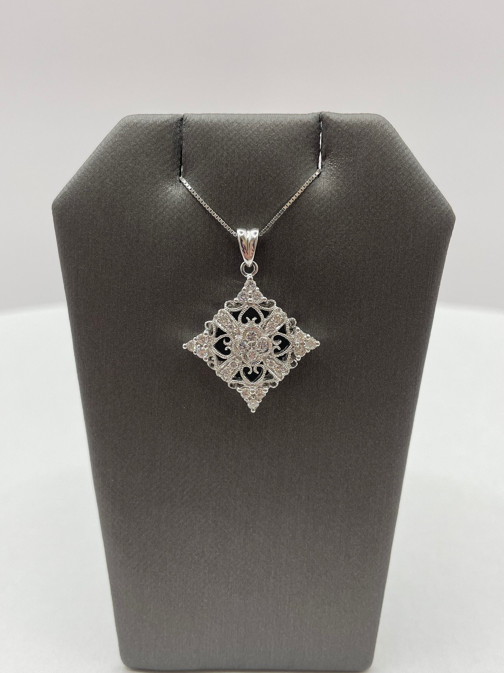 Snowflake Design Diamond Pendant in 14k White Gold