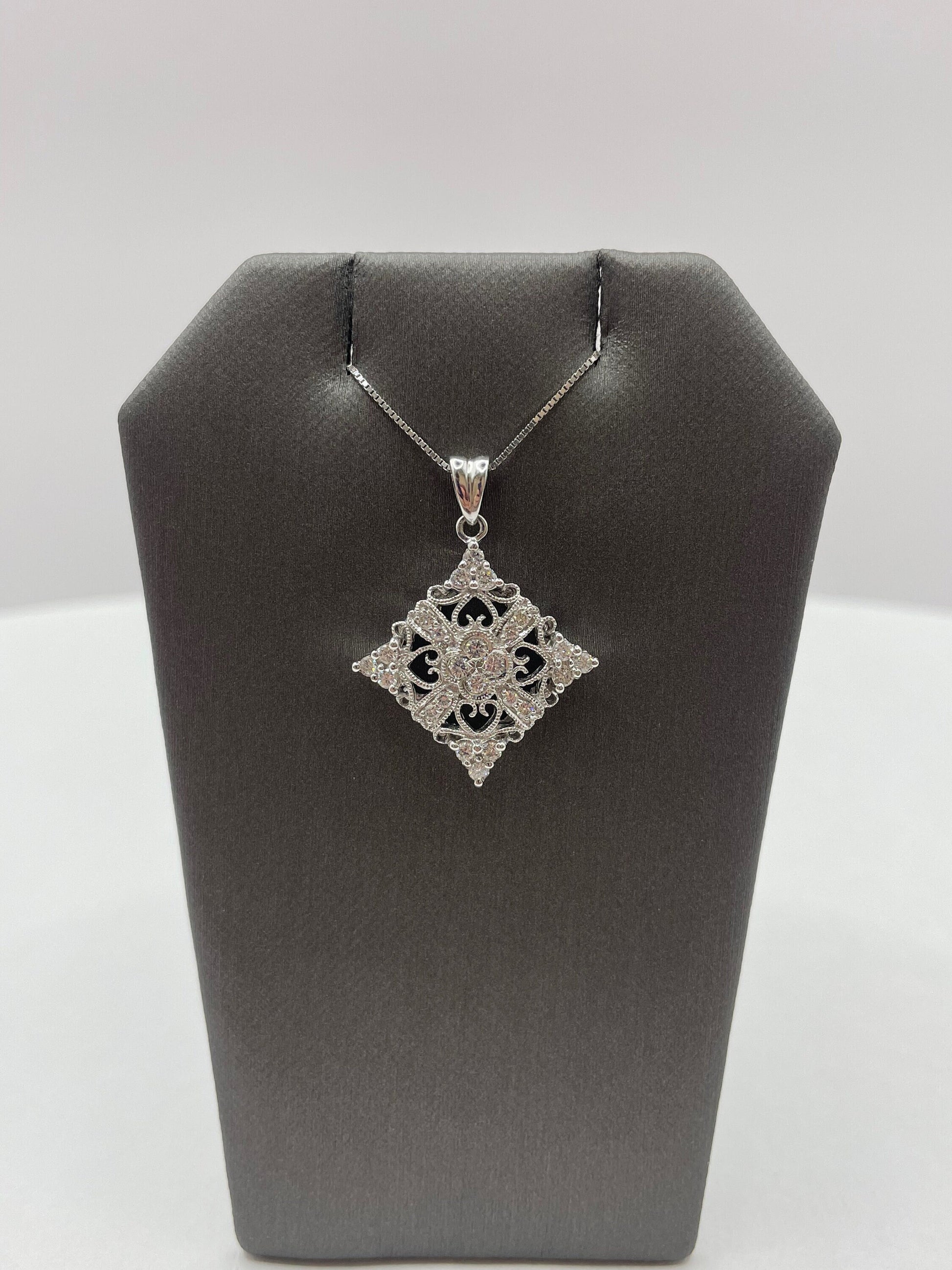 Pendant measurements - 21mm height, 28mm height w/ bail, 21mm width, 4mm depth