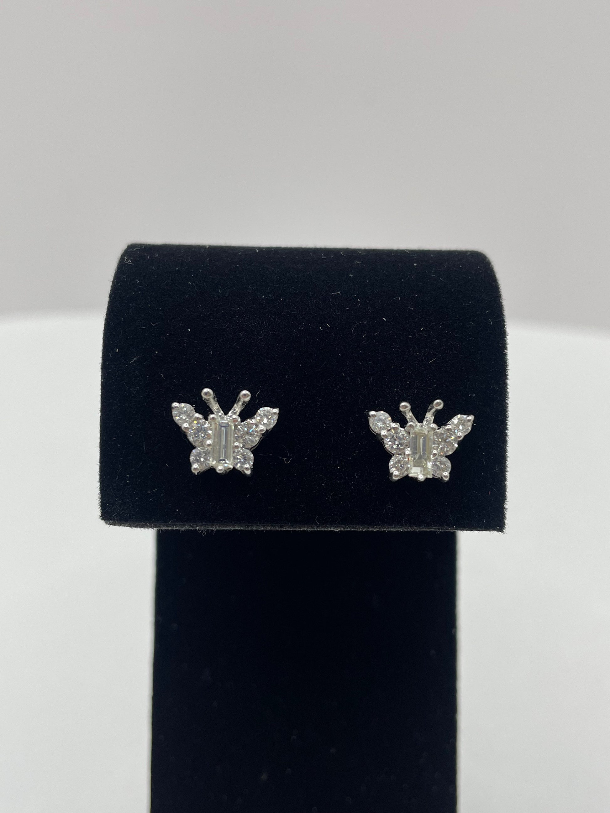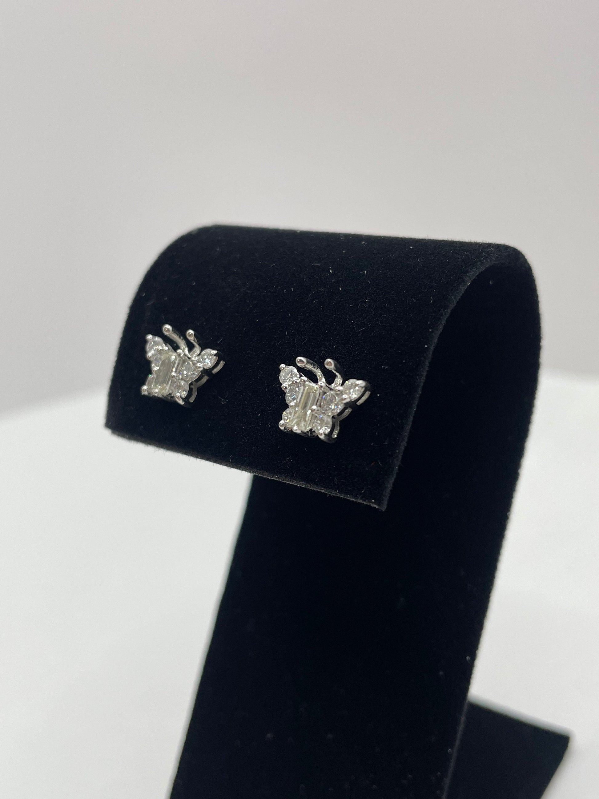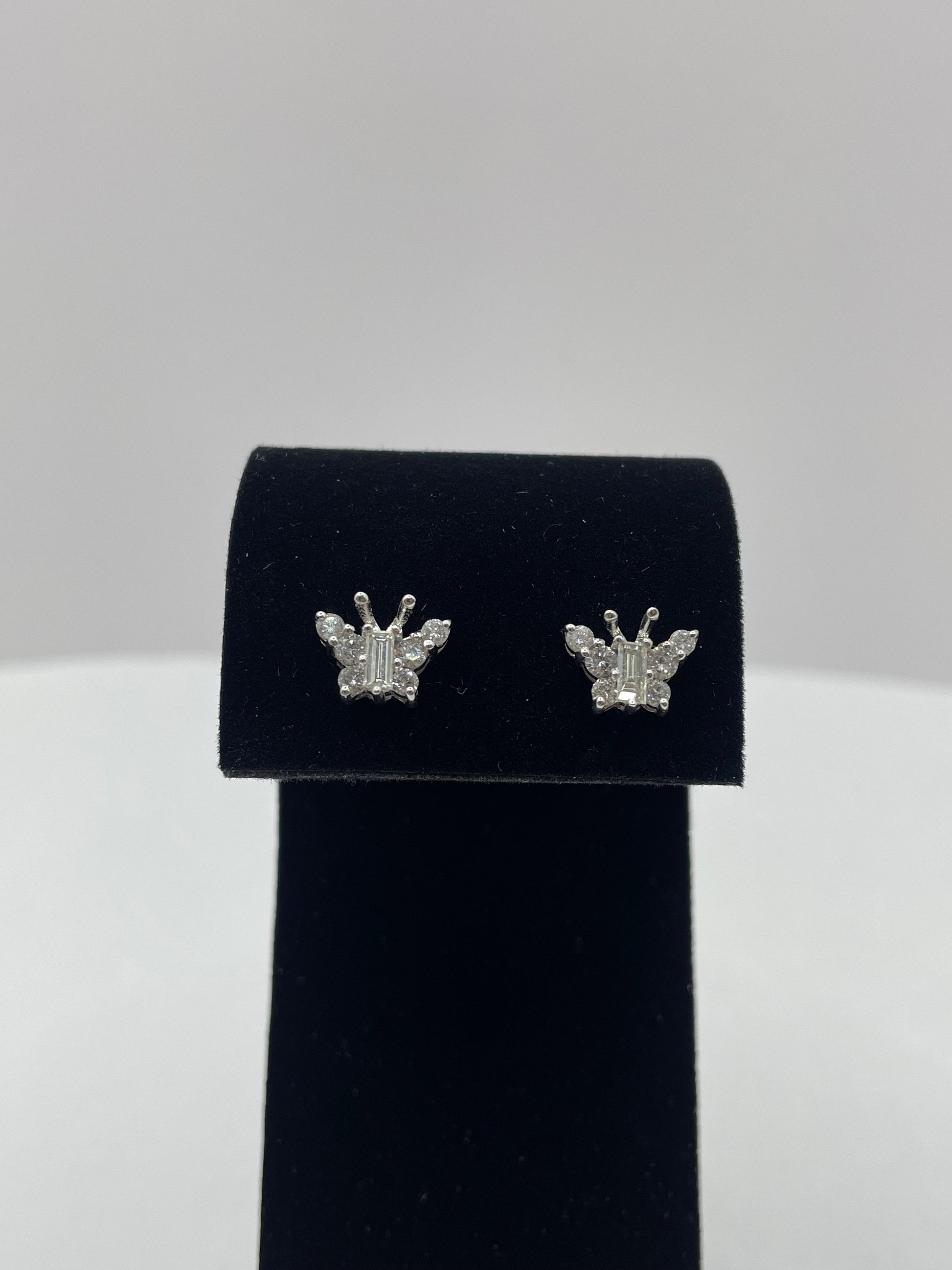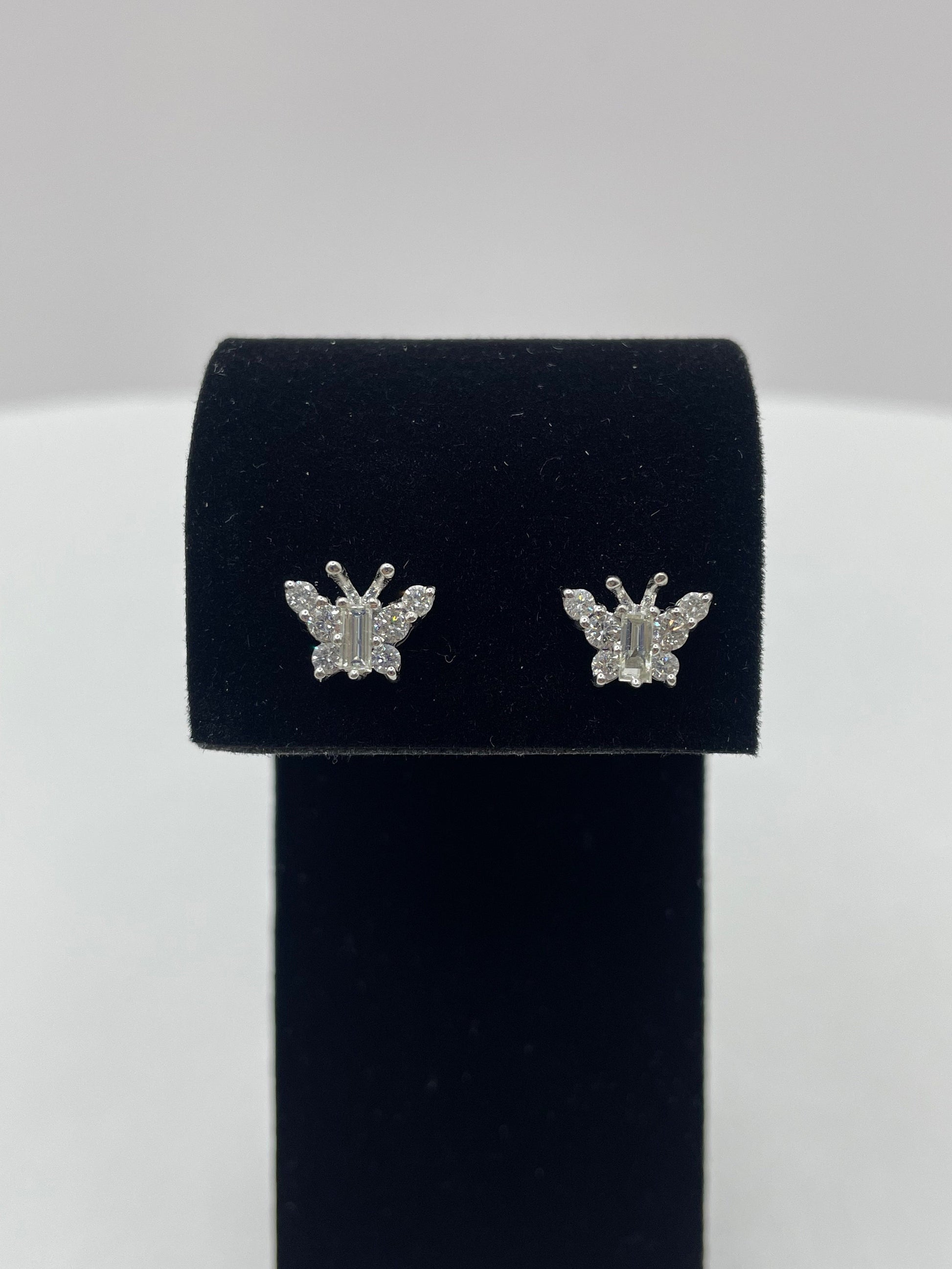 14k White Gold Large Butterfly Diamond Earrings