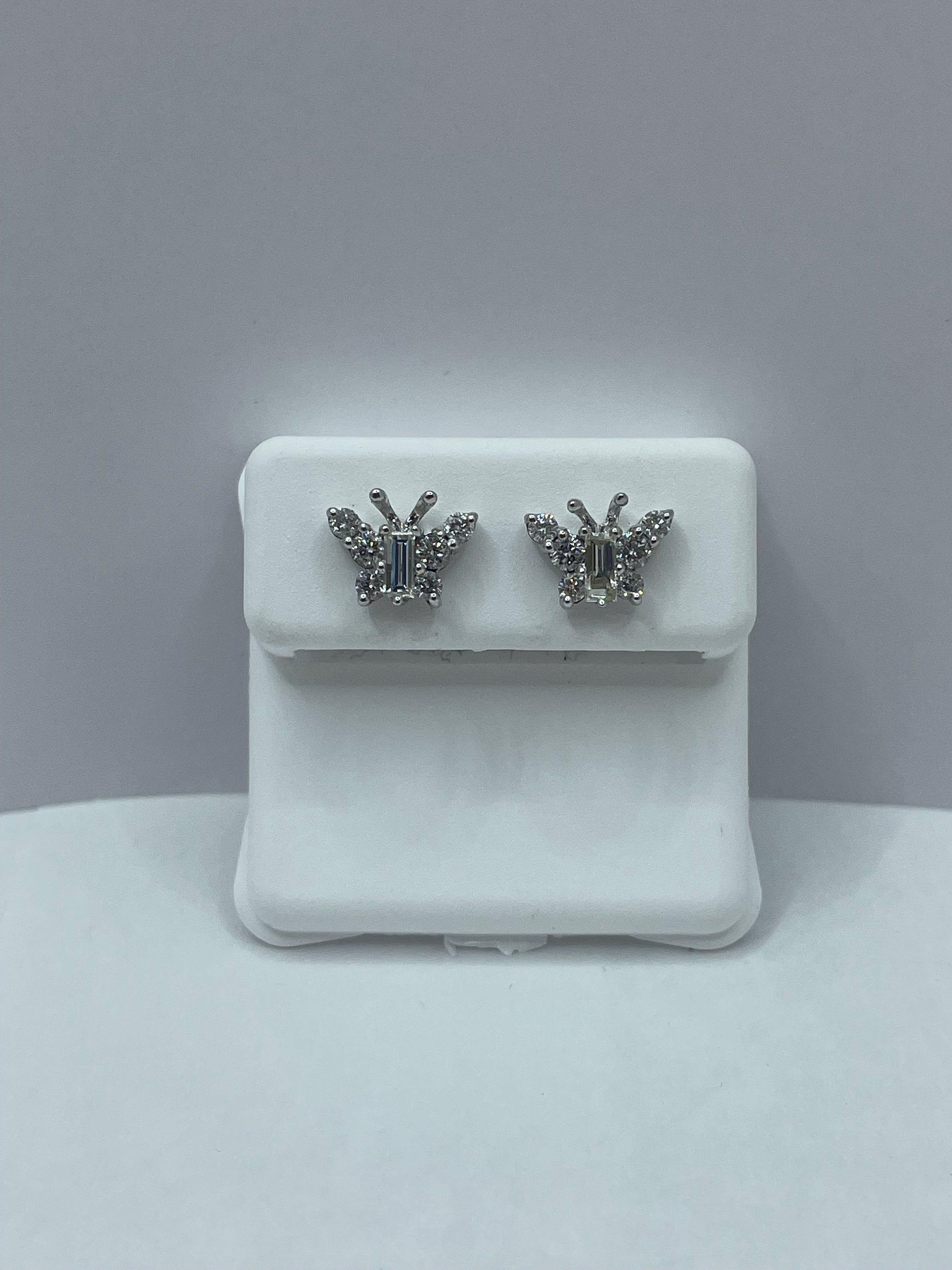 Large Butterfly Diamond Earrings in 14k White Gold