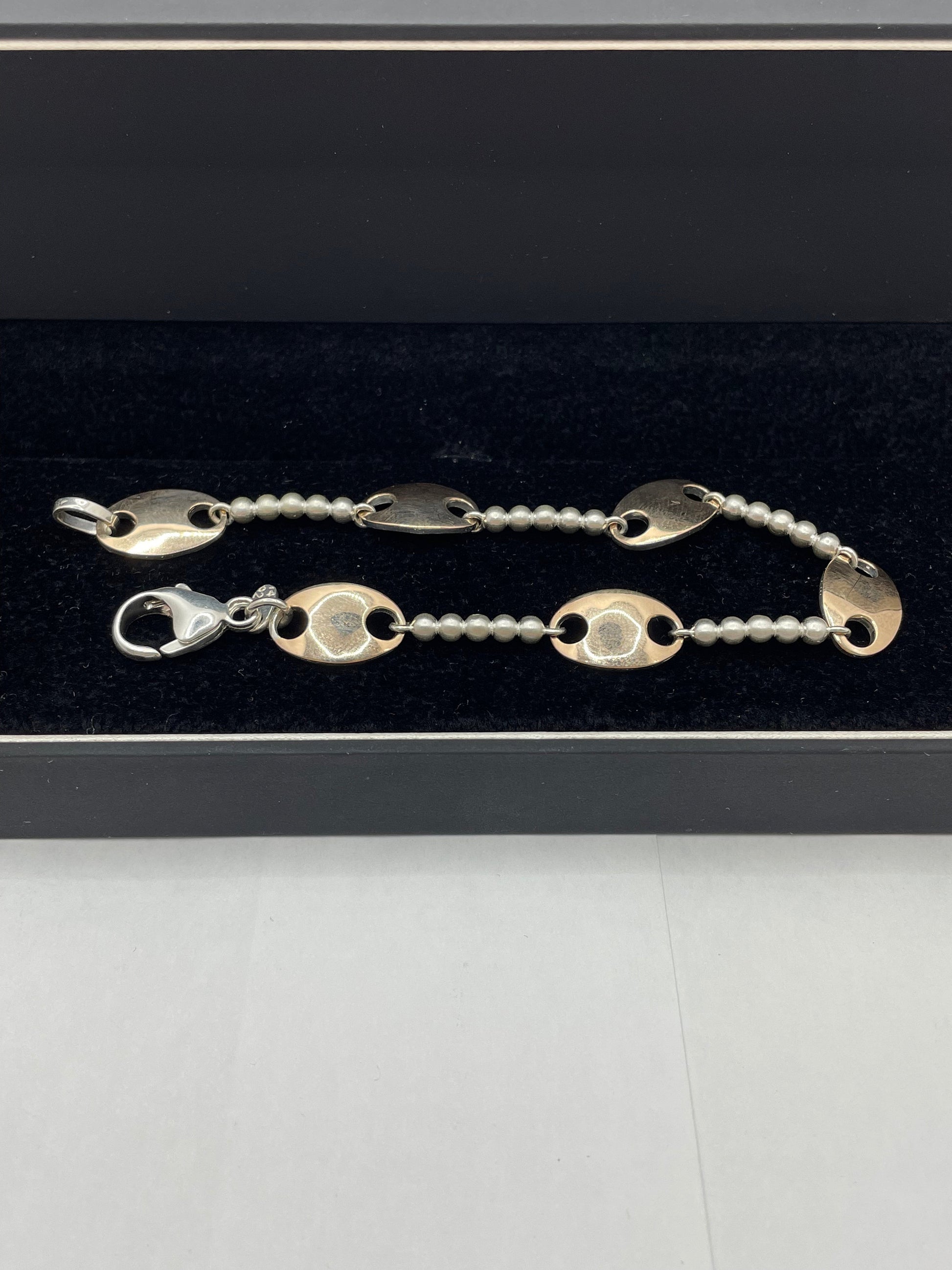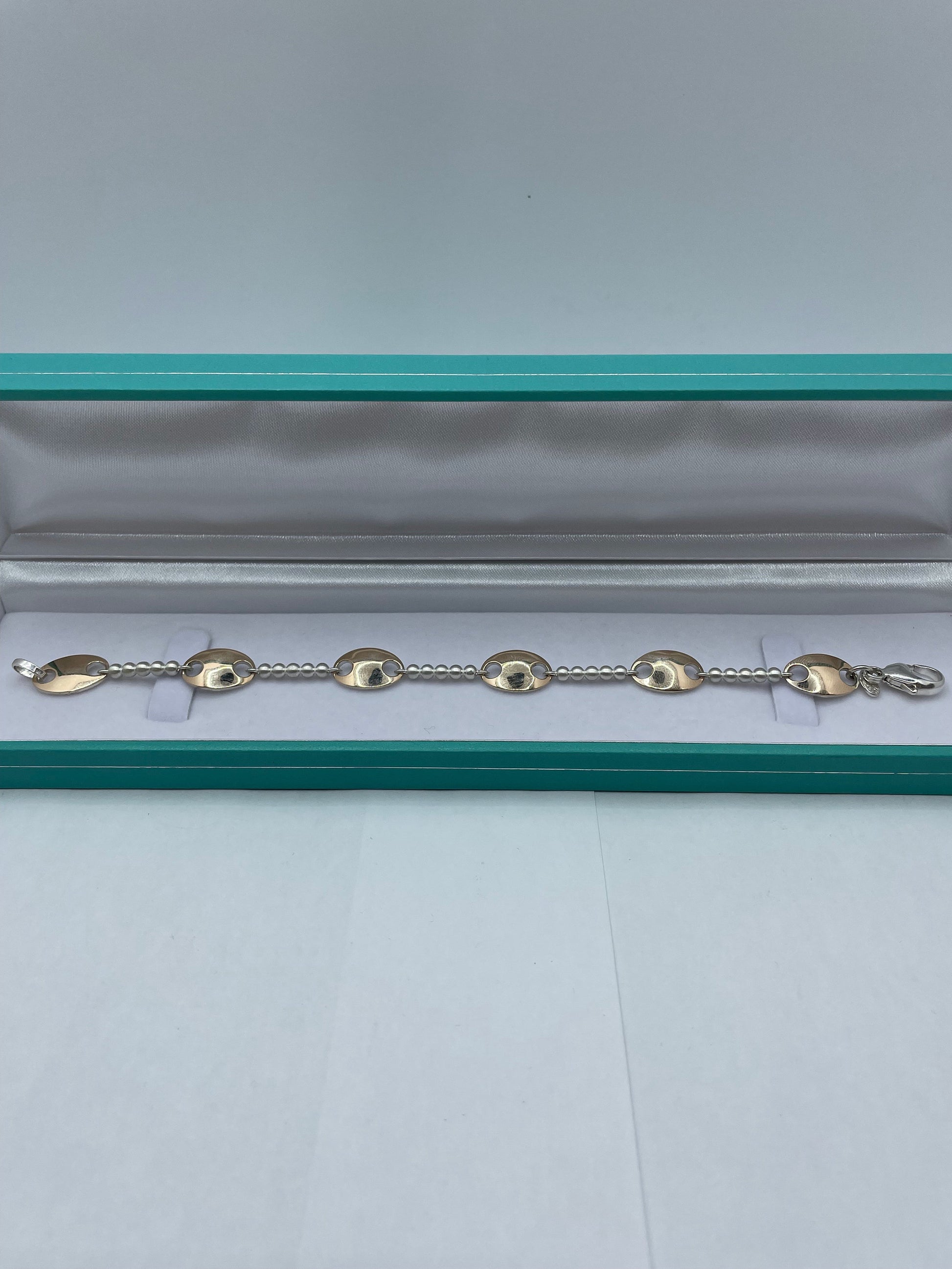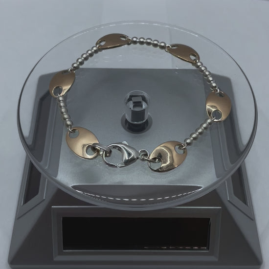 Two-Tone 14k Rose Gold and .925 Silver Mariner Link Bracelet 7.5 inch